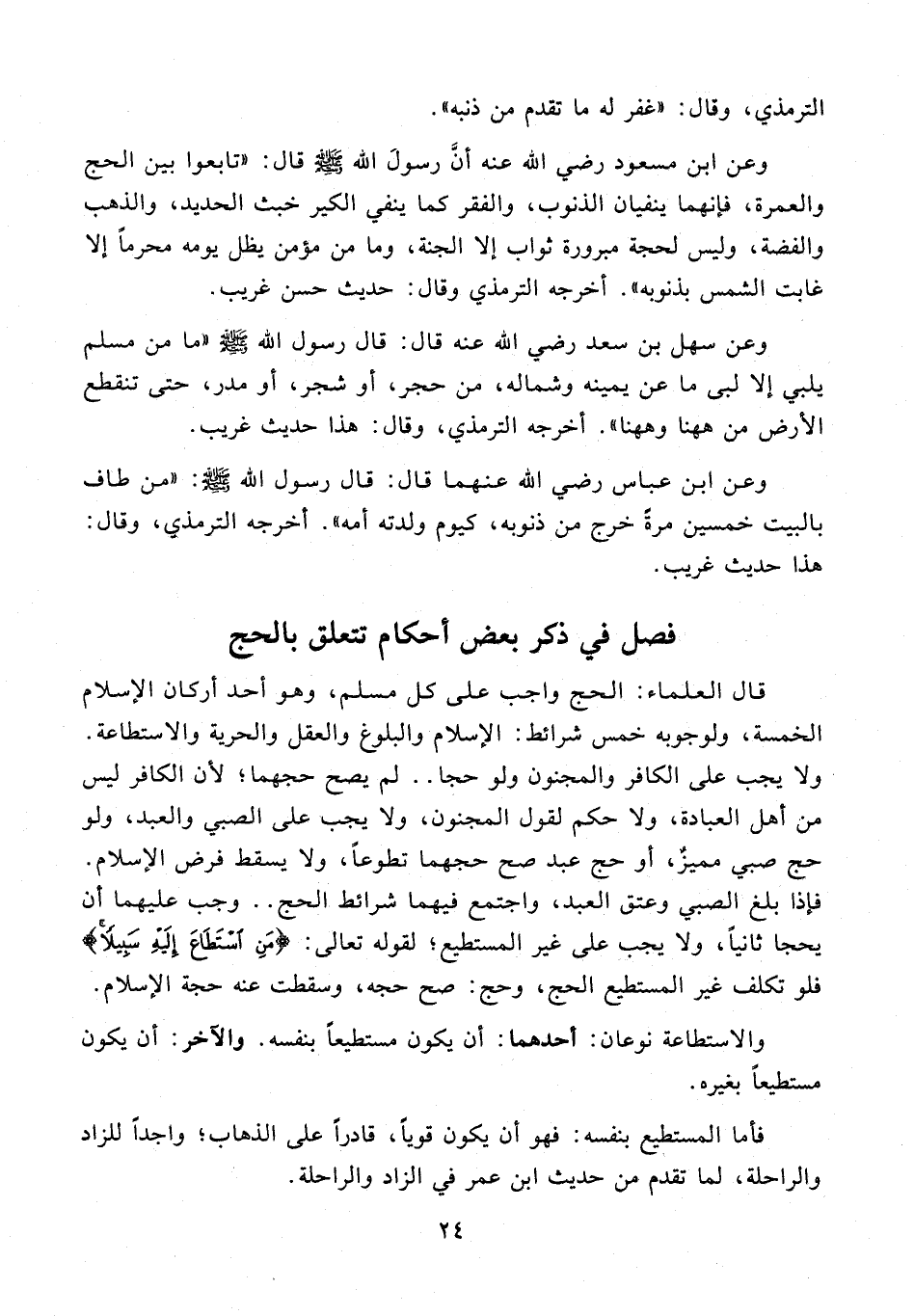 وعن ابن عباس - رضي الله عنهما - قال: قال رسول الله - صلى الله عليه وسلم -: "من طاف بالبيت خمسين مرةً خرج من ذنوبه، كيوم ولدته أمه". أخرجه الترمذي، وقال: هذا حديث غريب.