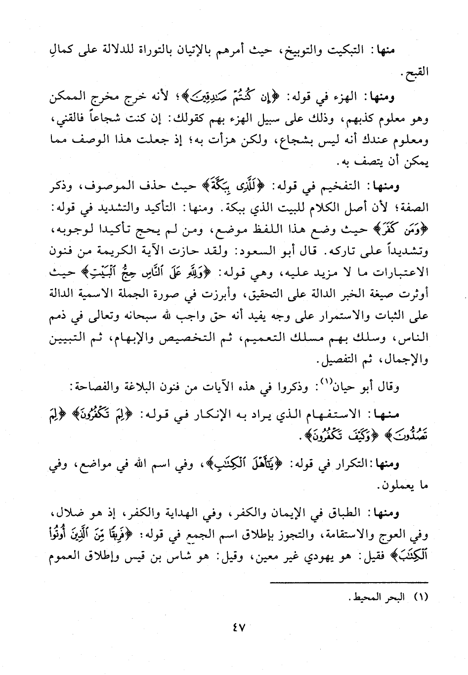 ومنها: التكرار في قوله: {يَا أَهْلَ الْكِتَابِ}، وفي اسم الله في مواضع، وفي ما يعملون.