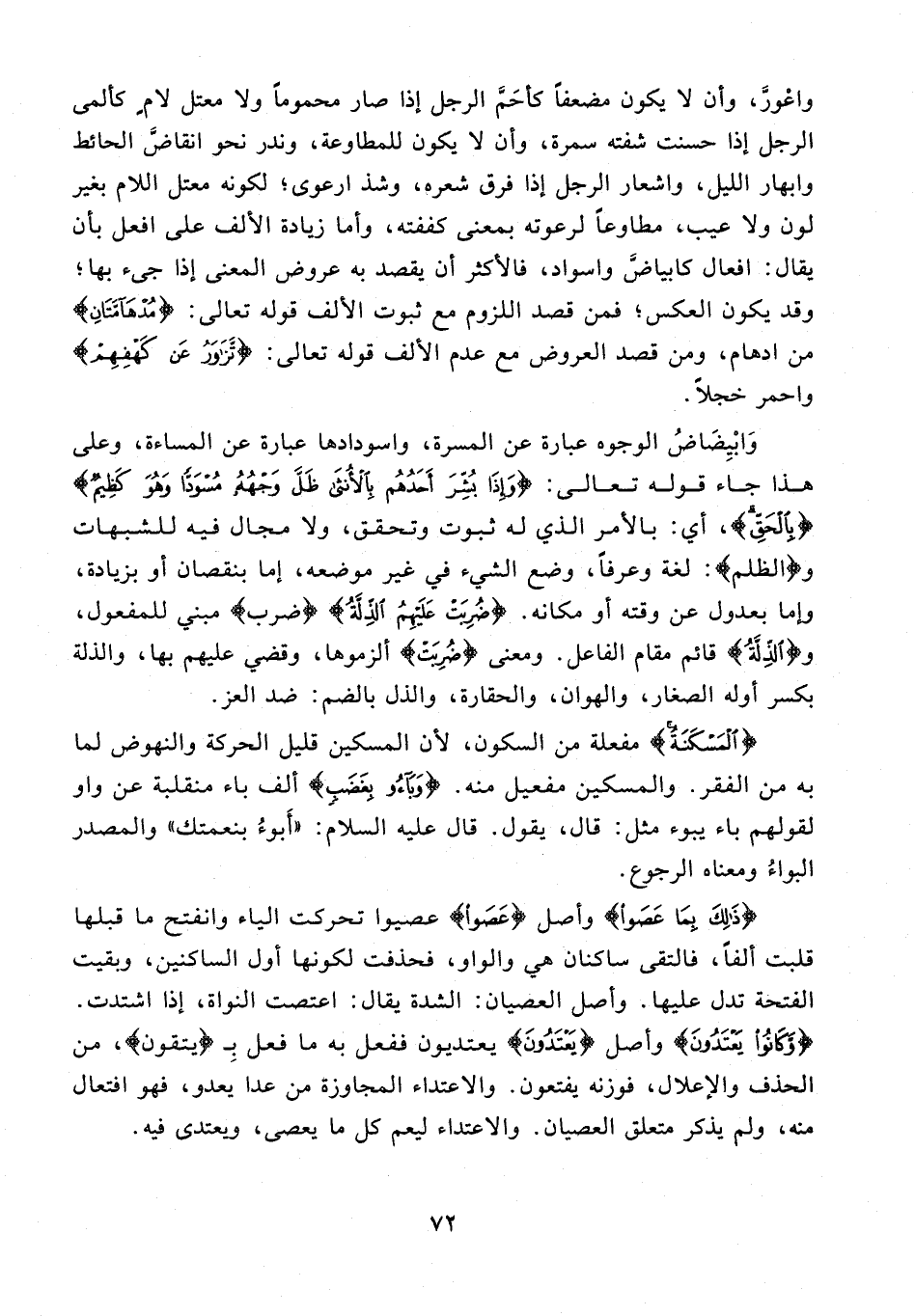 {ذَلِكَ بِمَا عَصَوْا} وأصل {عَصَوْا} عصيوا تحركت الياء وانفتح ما قبلها قلبت ألفًا، فالتقى ساكنان هي والواو، فحذفت لكونها أول الساكنين، وبقيت الفتحة تدل عليها. وأصل العصيان: الشدة يقال: اعتصت النواة، إذا اشتدت. {وَكَانُوا يَعْتَدُونَ} وأصل {يَعْتَدُونَ} يعتديون ففعل به ما فعل بِـ {يتقون}، من الحذف والإعلال، فوزنه يفتعون. والاعتداء المجاوزة من عدا يعدو، فهو افتعال منه، ولم يذكر متعلق العصيان. والاعتداء ليعم كل ما يعصى، ويعتدى فيه.
