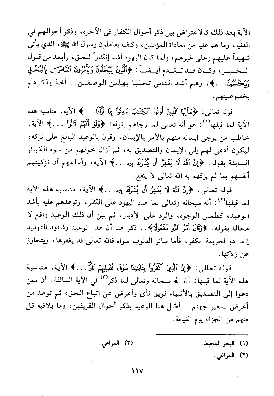 الآية بعد ذلك كالاعتراض بين ذكر أحوال الكفار في الآخرة، وذكر أحوالهم في الدنيا، وما هم عليه من معاداة المؤمنين، وكيف يعاملون رسول الله - صلى الله عليه وسلم -، الذي يأتي شهيدًا عليهم وعلى غيرهم، ولما كان اليهود أشد إنكارًا للحق، وأبعد من قبول الخير، وكان قد تقدم أيضًا: {الَّذِينَ يَبْخَلُونَ وَيَأمُرُونَ النَّاسَ بِالْبُخْلِ وَيَكْتُمُونَ ...}، وهم أشد الناس تحليا بهذين الوصفين .. أخذ يذكرهم بخصوصيتهم.