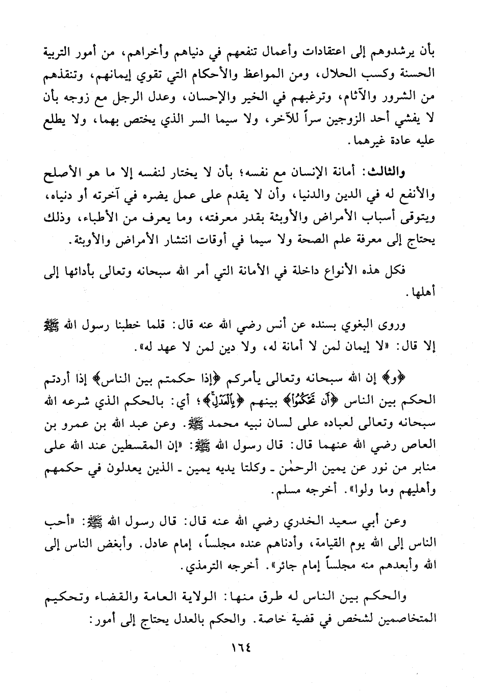 وروى البغوي بسنده عن أنس رضي الله عنه قال: قلما خطبنا رسول الله - صلى الله عليه وسلم - إلا قال: "لا إيمان لمن لا أمانة له، ولا دين لمن لا عهد له".
