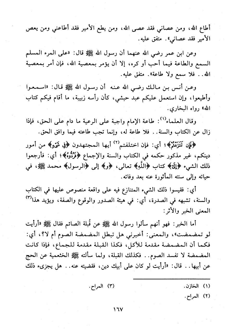 أطاع الله، ومن عصاني فقد عصى الله، ومن يطع الأمير فقد أطاعني ومن يعص الأمير فقد عصاني". متفق عليه.