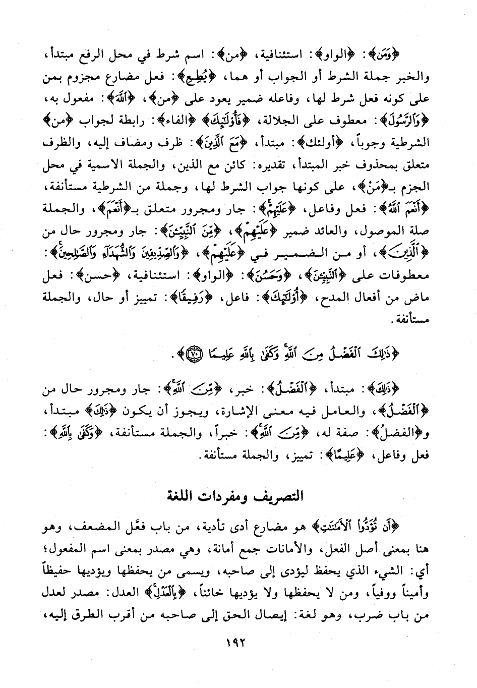 {ذَلِكَ}: مبتدأ، {الْفَضْلُ}: خبر، {مِنَ اللَّهِ}: جار ومجرور حال من {الْفَضْلُ}، والعامل فيه معنى الإشارة، ويجوز أن يكون {ذَلِكَ} مبتدأ، و {الفضلُ}: صفة له، {مِنَ اللَّهِ}: خبرًا، والجملة مستأنفة، {وَكَفَى بِاللَّهِ}: فعل وفاعل، {عَلِيمًا}: تمييز، والجملة مستأنفة.