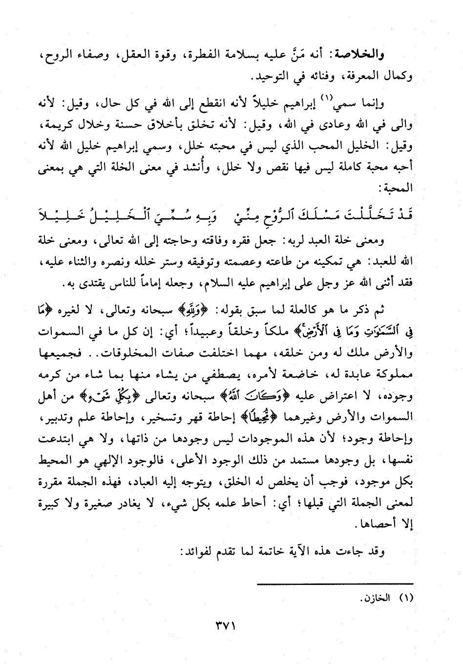 والخلاصة: أنه مَنَّ عليه بسلامة الفطرة، وقوة العقل، وصفاء الروح، وكمال المعرفة، وفنائه في التوحيد.