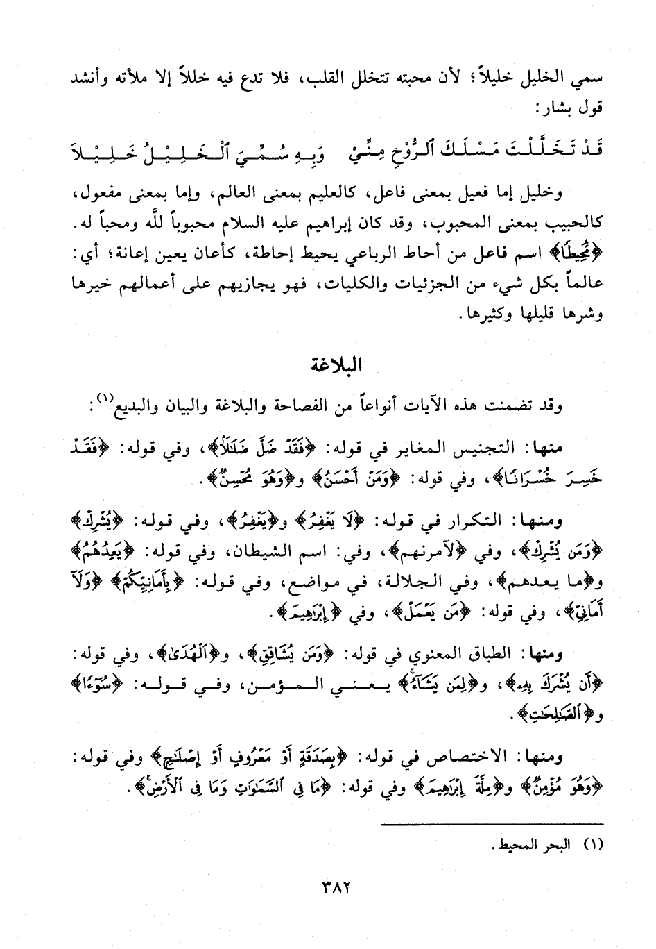 وخليل إما فعيل بمعنى فاعل، كالعليم بمعنى العالم، وإما بمعنى مفعول، كالحبيب بمعنى المحبوب، وقد كان إبراهيم عليه السلام محبوبًا للَّه ومحبًّا له. {مُحِيطًا} اسم فاعل من أحاط الرباعي يحيط إحاطة، كأعان يعين إعانة؛ أي: عالمًا بكل شيء من الجزئيات والكليات، فهو يجازيهم على أعمالهم خيرها وشرها قليلها وكثيرها.