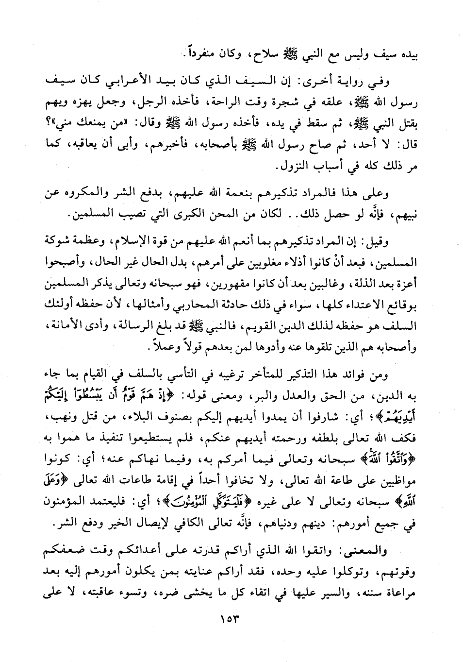 وعلى هذا فالمراد تذكيرهم بنعمة الله عليهم، بدفع الشر والمكروه عن نبيهم، فإنَّه لو حصل ذلك .. لكان من المحن الكبرى التي تصحب المسلمين.