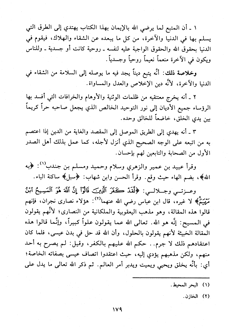 17 - وعزتي وجلالي: {لَقَدْ كَفَرَ الَّذِينَ قَالُوا إِنَّ اللَّهَ هُوَ الْمَسِيحُ ابْنُ مَرْيَمَ} لا غيره، قال ابن عباس رضي الله عنهما (¬2): هؤلاء نصارى نجران، فإنهم قالوا هذه المقالة، وهو مذهب اليعقوبية والملكانية من النصارى؛ لأنَّهم يقولون في المسيح: إنَّه هو الله. تعالى الله عما يقولون علوًّا كبيرًا، وإنَّما قالوا هذه المقالة الخبيثة لأنهم يقولون بالحلول، وأن الله قد حل في بدن عيسى، فلما كان اعتقادهم ذلك لا جرم .. حكم الله عليهم بالكفر، وقيل: لم يصرح به أحد منهم، ولكن مذهبهم يؤدي إليه، حيث اعتقدوا اتصاف عيسى بصفاته الخاصة؛ أي: بأنَّه يخلق ويحيي ويميت ويدبر أمر العالم. ثم ذكر الله تعالى ما يدل على