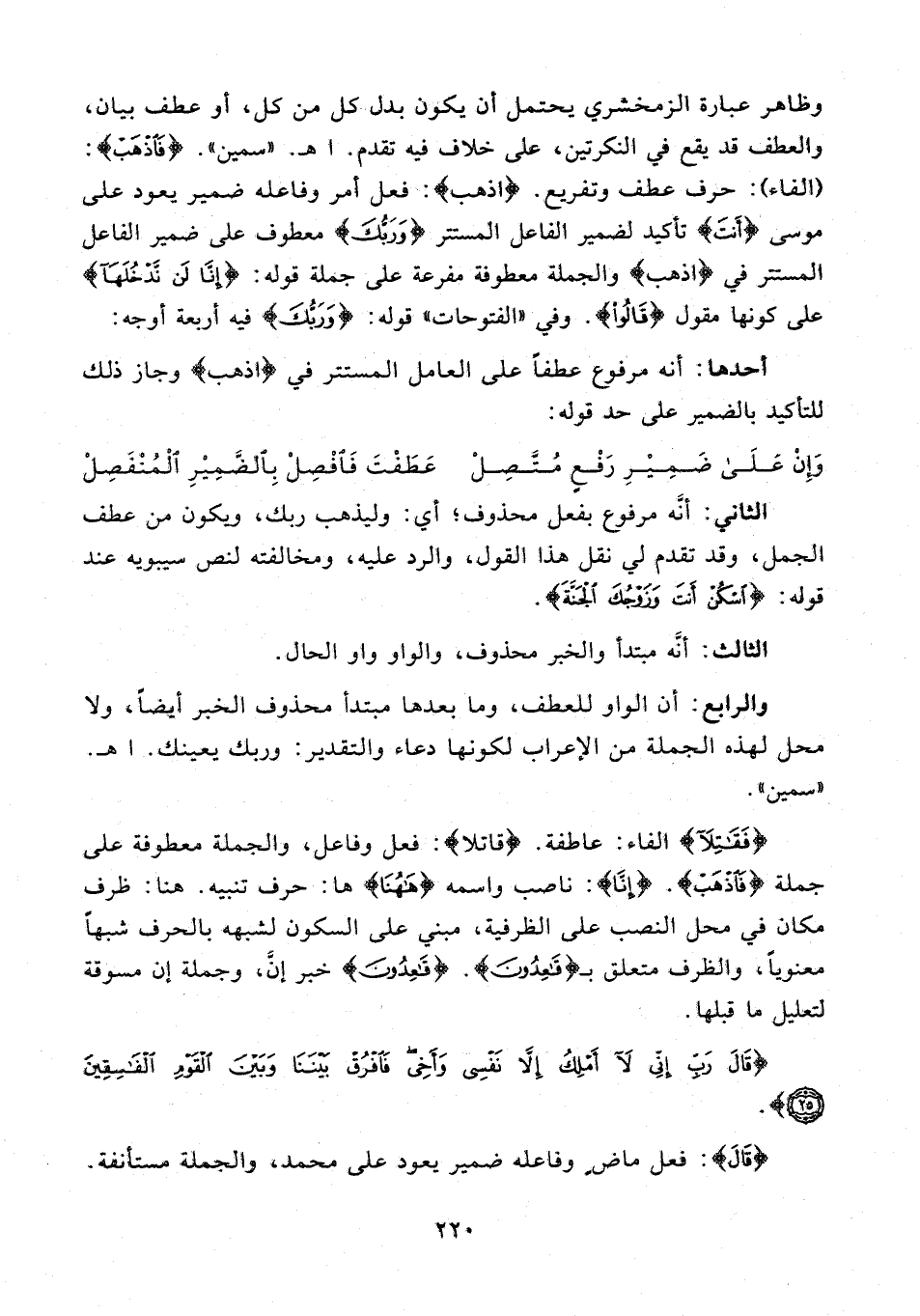 وظاهر عبارة الزمخشري يحتمل أن يكون بدل كل من كل، أو عطف بيان، والعطف قد يقع في النكرتين، على خلاف فيه تقدم. اهـ. "سمين". {فَاذْهَبْ}: (الفاء): حرف عطف وتفريع. {اذهب}: فعل أمر وفاعله ضمير يعود على موسى {أَنْتَ} تأكيد لضمير الفاعل المستتر {وَرَبُّكَ} معطوف على ضمير الفاعل المستتر في {اذهب} والجملة معطوفة مفرعة على جملة قوله: {إِنَّا لَنْ نَدْخُلَهَا} على كونها مقول {قَالُوا}. وفي "الفتوحات" قوله: {وَرَبُّكَ} فيه أربعة أوجه: