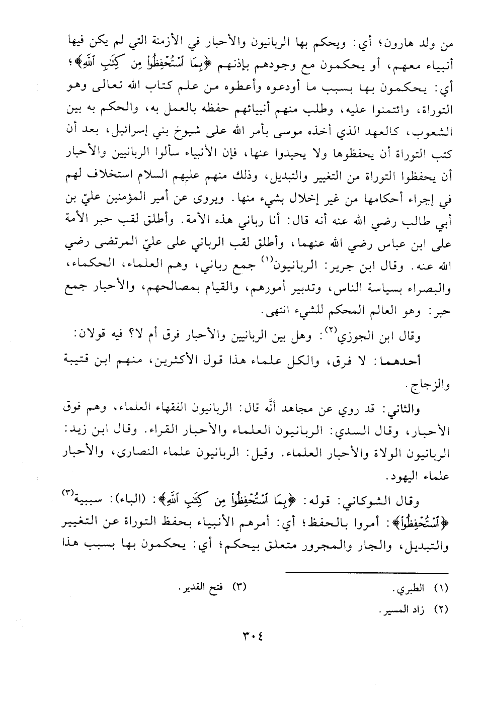والثاني: قد روي عن مجاهد أنَّه قال: الربانيون الفقهاء العلماء، وهم فوق الأحبار، وقال السدي: الربانيون العلماء والأحبار القراء. وقال ابن زيد: الربانيون الولاة والأحبار العلماء. وقيل: الربانيون علماء النصارى، والأحبار علماء اليهود.