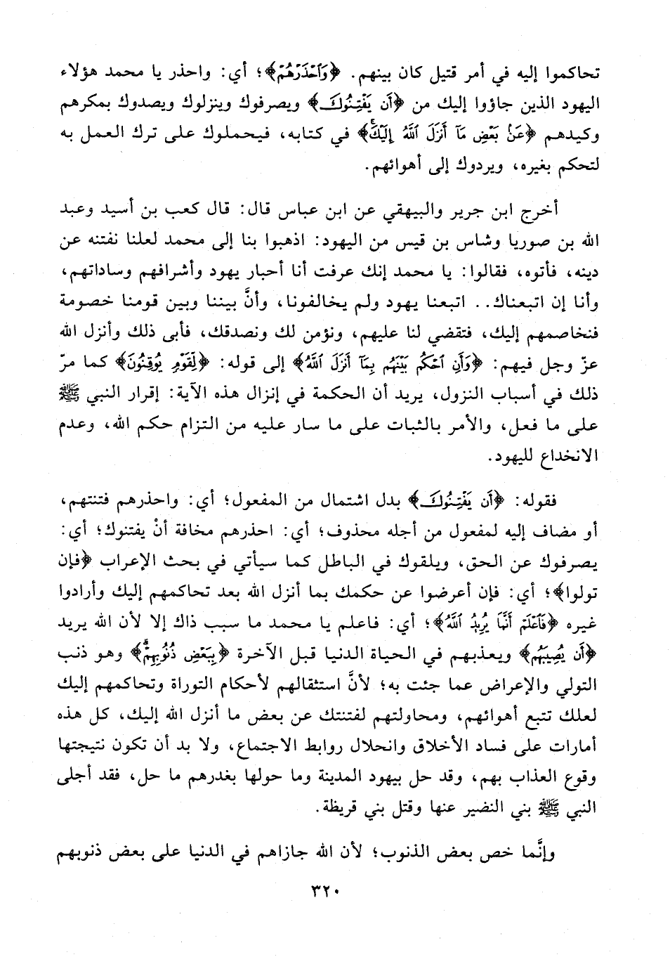 تحاكموا إليه في أمر قتيل كان بينهم. {وَاحْذَرْهُمْ}؛ أي: واحذر يا محمد هؤلاء اليهود الذين جاؤوا إليك من {أَنْ يَفْتِنُوكَ} ويصرفوك وينزلوك ويصدوك بمكرهم وكيدهم {عَنْ بَعْضِ مَا أَنْزَلَ اللَّهُ إِلَيْكَ} في كتابه، فيحملوك على ترك العمل به لتحكم بغيره، ويردوك إلى أهوائهم.