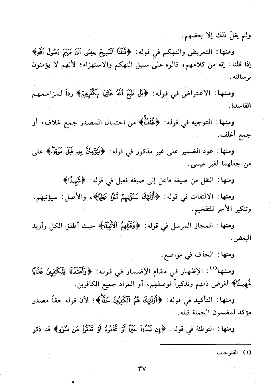 ومنها: الاعتراض في قوله: {بَلْ طَبَعَ اللَّهُ عَلَيْهَا بِكُفْرِهِمْ} ردًّا لمزاعمهم الفاسدة.
