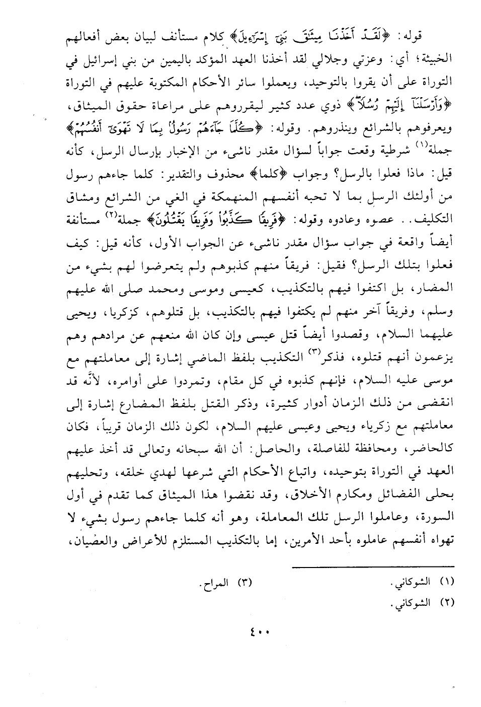 70 - قوله: {لَقَدْ أَخَذْنَا مِيثَاقَ بَنِي إِسْرَائِيلَ} كلام مستأنف لبيان بعض أفعالهم الخبيثة؛ أي: وعزتي وجلالي لقد أخذنا العهد المؤكد باليمين من بني إسرائيل في التوراة على أن يقروا بالتوحيد، ويعملوا سائر الأحكام المكتوبة عليهم في التوراة {وَأَرْسَلْنَا إِلَيْهِمْ رُسُلًا} ذوي عدد كثير ليقرروهم على مراعاة حقوق الميثاق، ويعرفوهم بالشرائع وينذروهم. وقوله: {كُلَّمَا جَاءَهُمْ رَسُولٌ بِمَا لَا تَهْوَى أَنْفُسُهُمْ} جملة (1) شرطية وقعت جوابًا لسؤال مقدر ناشىء من الإخبار بإرسال الرسل، كأنه قيل: ماذا فعلوا بالرسل؟ وجواب {كُلَّمَا} محذوف والتقدير: كلما جاءهم رسول من أولئك الرسل بما لا تحبه أنفسهم المنهمكة في الغي من الشرائع ومشاق التكليف. . عصوه وعادوه وقوله: {فَرِيقًا كَذَّبُوا وَفَرِيقًا يَقْتُلُونَ} جملة (2) مستأنفة أيضًا واقعة في جواب سؤال مقدر ناشىء عن الجواب الأول، كأنه قيل: كيف فعلوا بتلك الرسل؟ فقيل: فريقًا منهم كذبوهم ولم يتعرضوا لهم بشيء من المضار، بل اكتفوا فيهم بالتكذيب، كعيسى وموسى ومحمد صلى الله عليهم وسلم، وفريقًا آخر منهم لم يكتفوا فيهم بالتكذيب، بل قتلوهم، كزكريا، ويحيى عليهما السلام، وقصدوا أيضًا قتل عيسى وإن كان الله منعهم عن مرادهم وهم يزعمون أنهم قتلوه، فذكر (3) التكذيب بلفظ الماضي إشارة إلى معاملتهم مع موسى عليه السلام، فإنهم كذبوه في كل مقام، وتمردوا على أوامره، لأنَّه قد انقضى من ذلك الزمان أدوار كثيرة، وذكر القتل بلفظ المضارع إشارة إلى معاملتهم مع زكرياء ويحيى وعيسى عليهم السلام، لكون ذلك الزمان قريبًا، فكان كالحاضر، ومحافظة للفاصلة، والحاصل: أن الله سبحانه وتعالى قد أخذ عليهم العهد في التوراة بتوحيده، واتباع الأحكام التي شرعها لهدي خلقه، وتحليهم بحلى الفضائل ومكارم الأخلاق، وقد نقضوا هذا الميثاق كما تقدم في أول السورة، وعاملوا الرسل تلك المعاملة، وهو أنه كلما جاءهم رسول بشيء لا تهواه أنفسهم عاملوه بأحد الأمرين، إما بالتكذيب المستلزم للأعراض والعصيان،