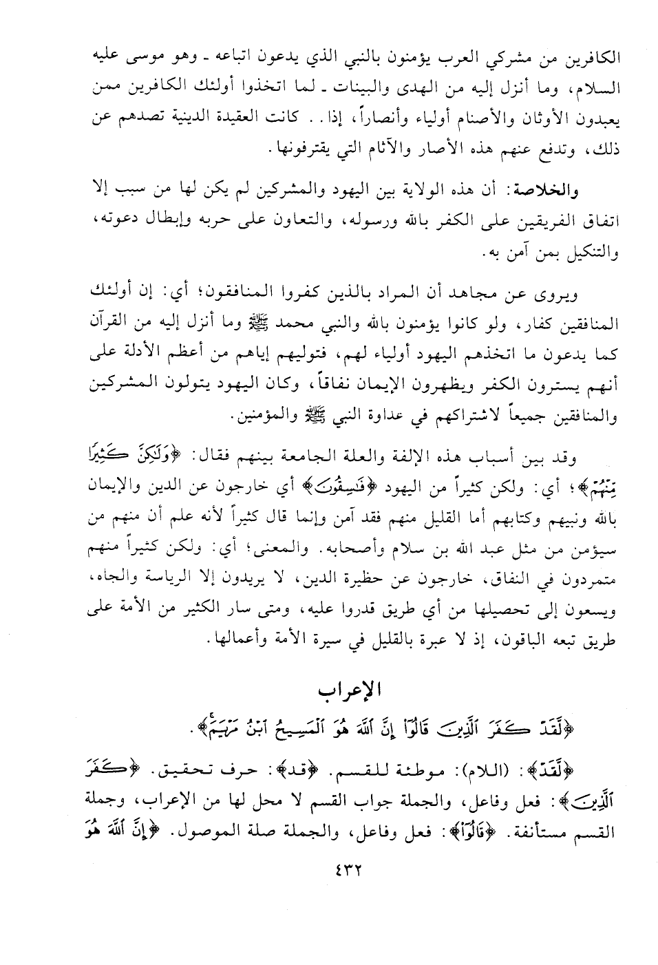 {لَقَدْ كَفَرَ الَّذِينَ قَالُوا إِنَّ اللَّهَ هُوَ الْمَسِيحُ ابْنُ مَرْيَمَ}.