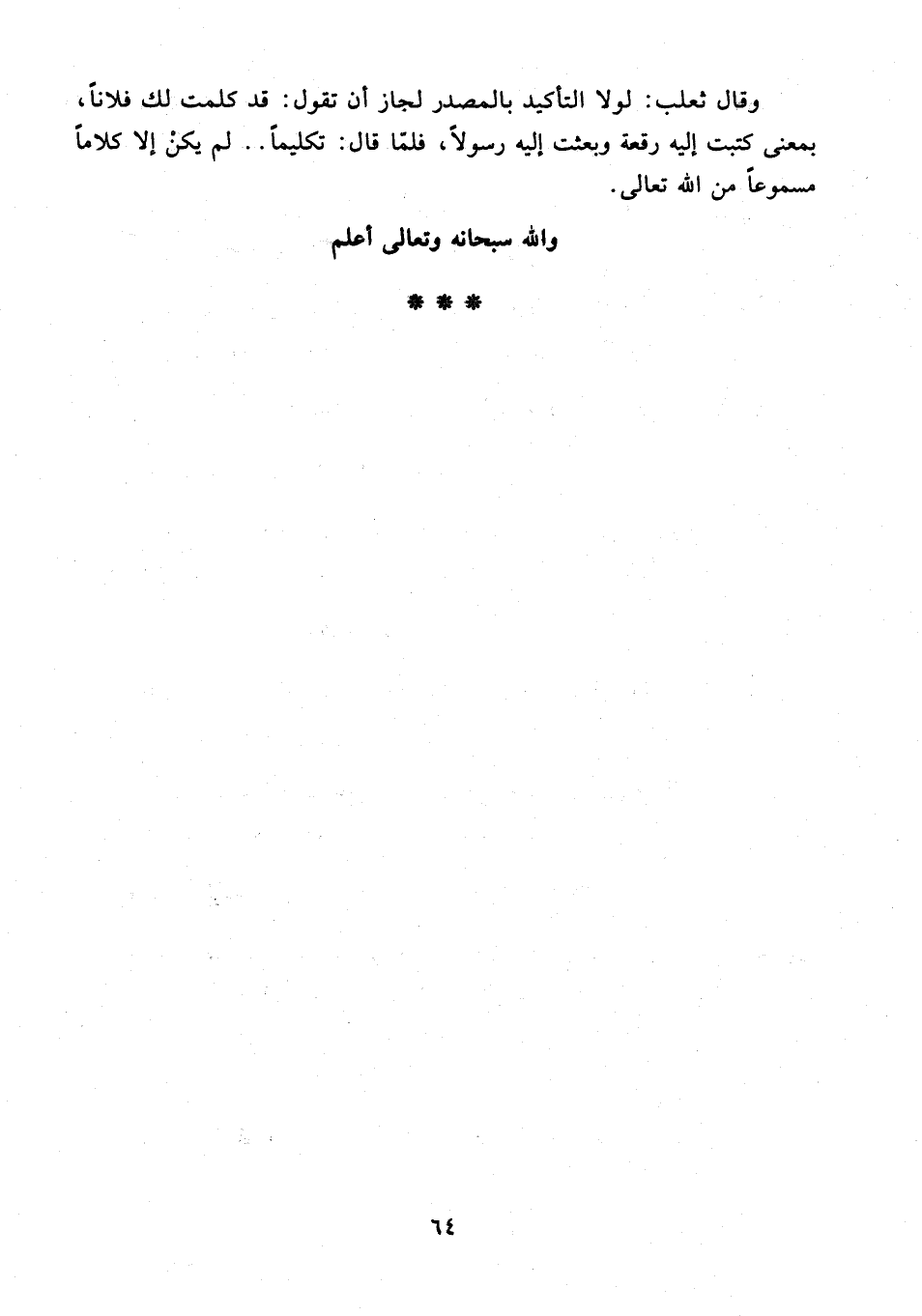 وقال ثعلب: لولا التأكيد بالمصدر لجاز أن تقول: قد كلمت لك فلانًا، بمعنى كتبت إليه رقعة وبعثت إليه رسولًا، فلمّا قال: تكليمًا .. لم يكنْ إلا كلامًا مسموعًا من الله تعالى.