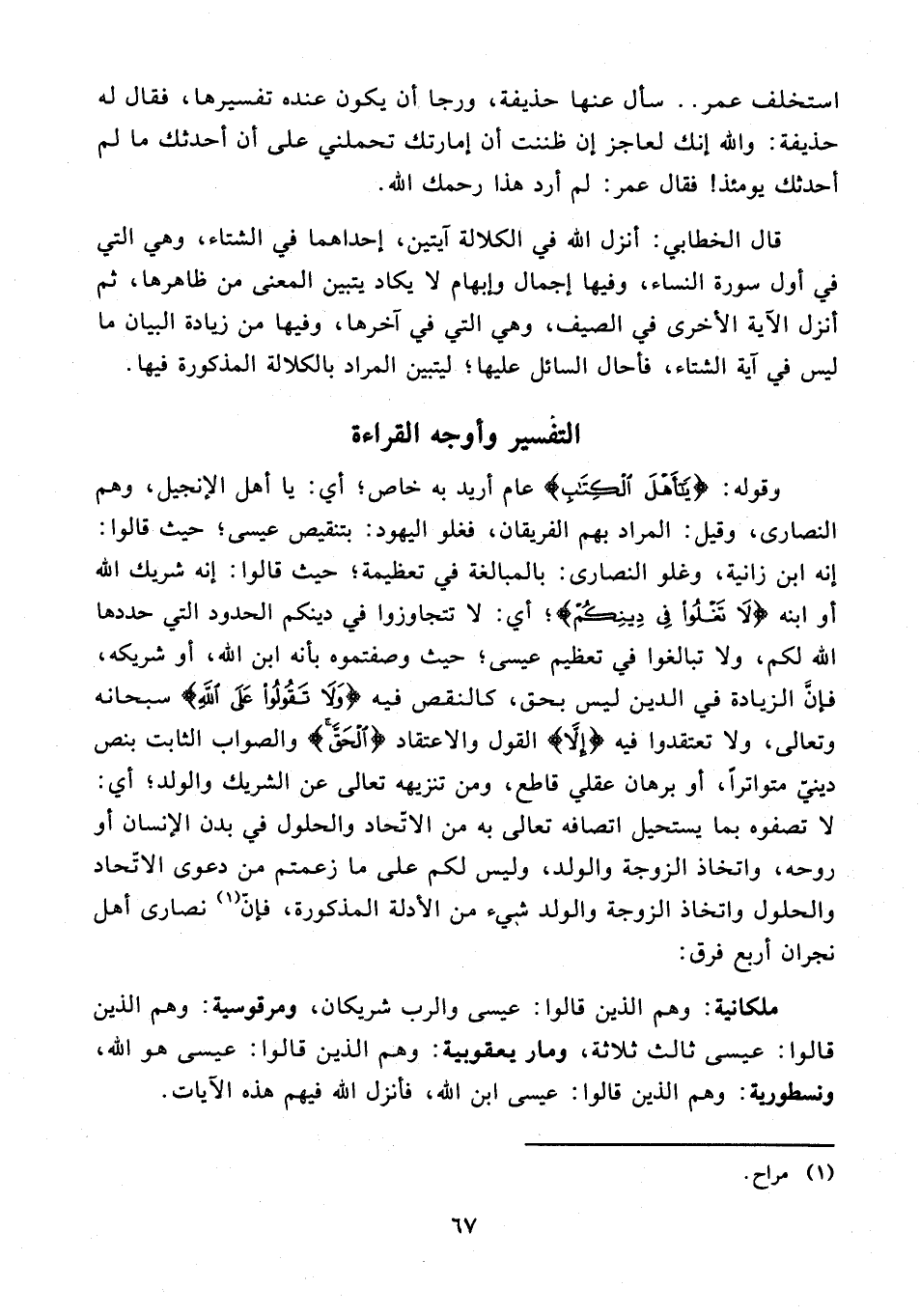 ملكانية: وهم الذين قالوا: عيسى والرب شريكان، ومرقوسية: وهم الذين قالوا: عيسى ثالث ثلاثة، ومار يعقوبية: وهم الذين قالوا: عيسى هو الله، ونسطورية: وهم الذين قالوا: عيسى ابن الله، فأنزل الله فيهم هذه الآيات.