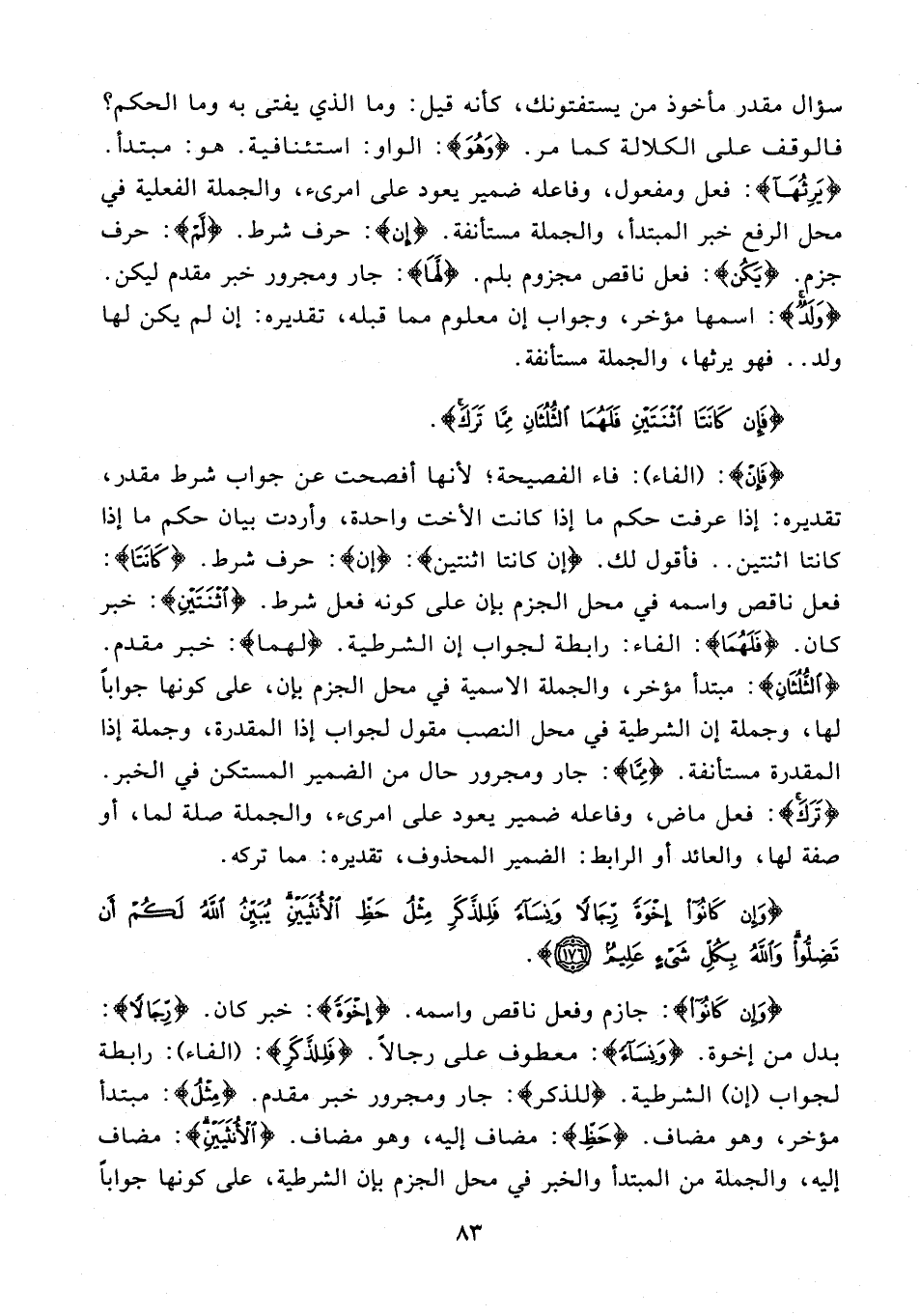 {وَإِنْ كَانُوا إِخْوَةً رِجَالًا وَنِسَاءً فَلِلذَّكَرِ مِثْلُ حَظِّ الْأُنْثَيَيْنِ يُبَيِّنُ اللَّهُ لَكُمْ أَنْ تَضِلُّوا وَاللَّهُ بِكُلِّ شَيْءٍ عَلِيمٌ (176)}.