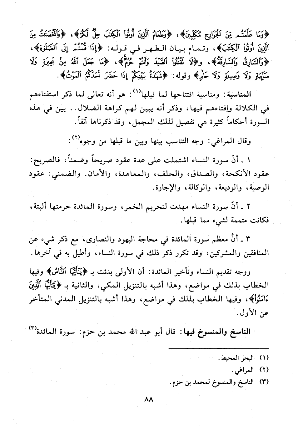 الناسخ والمنسوخ فيها: قال أبو عبد الله محمد بن حزم: سورة المائدة (¬3)