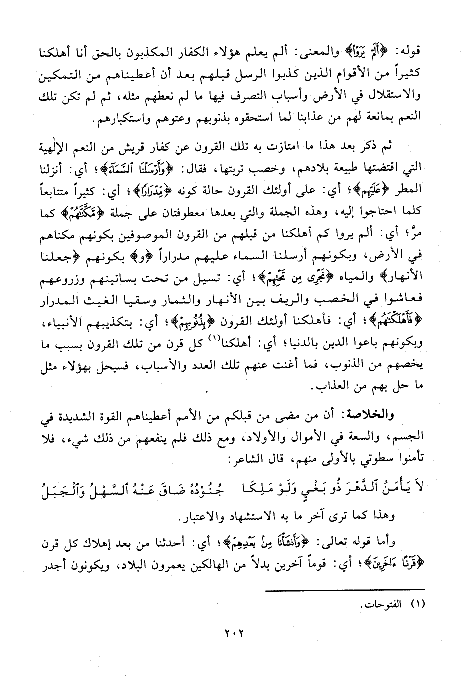 قوله: {أَلَمْ يَرَوْا} والمعنى: ألم يعلم هؤلاء الكفار المكذبون بالحق أنا أهلكنا كثيرًا من الأقوام الذين كذبوا الرسل قبلهم بعد أن أعطيناهم من التمكين والاستقلال في الأرض وأسباب التصرف فيها ما لم نعطهم مثله، ثم لم تكن تلك النعم بمانعة لهم من عذابنا لما استحقوه بذنوبهم وعتوهم واستكبارهم.