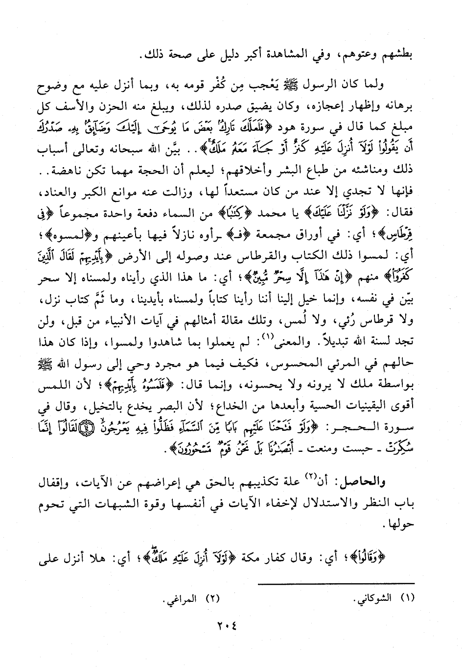 ولما كان الرسول - صلى الله عليه وسلم - يَعْجب مِن كُفْر قومه به، وبما أنزل عليه مع وضوح برهانه وإظهار إعجازه، وكان يضيق صدره لذلك، ويبلغ منه الحزن والأسف كل مبلغ كما قال في سورة هود {فَلَعَلَّكَ تَارِكٌ بَعْضَ مَا يُوحَى إِلَيْكَ وَضَائِقٌ بِهِ صَدْرُكَ أَنْ يَقُولُوا لَوْلَا أُنْزِلَ عَلَيْهِ كَنْزٌ أَوْ جَاءَ مَعَهُ مَلَكٌ} .. بيَّن الله سبحانه وتعالى أسباب ذلك ومناشئه من طباع البشر وأخلاقهم؛ ليعلم أن الحجة مهما تكن ناهضة .. فإنها لا تجدي إلا عند من كان مستعدًا لها، وزالت عنه موانع الكبر والعناد،