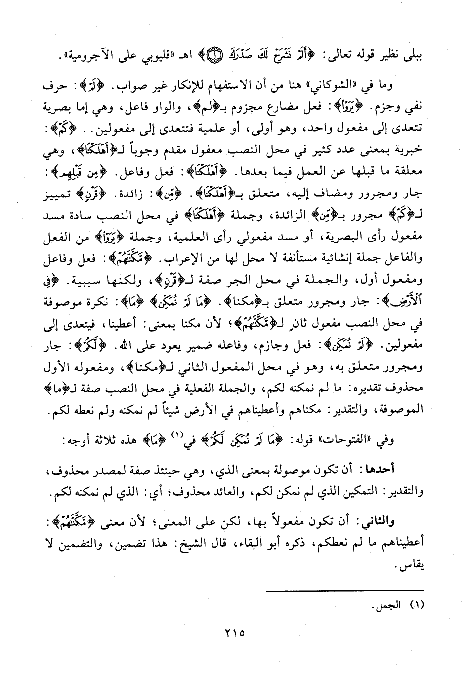 وفي "الفتوحات" قوله: {مَا لَمْ نُمَكِّنْ لَكُمْ} في (¬1) {مَا} هو هذه ثلاثة أوجه: