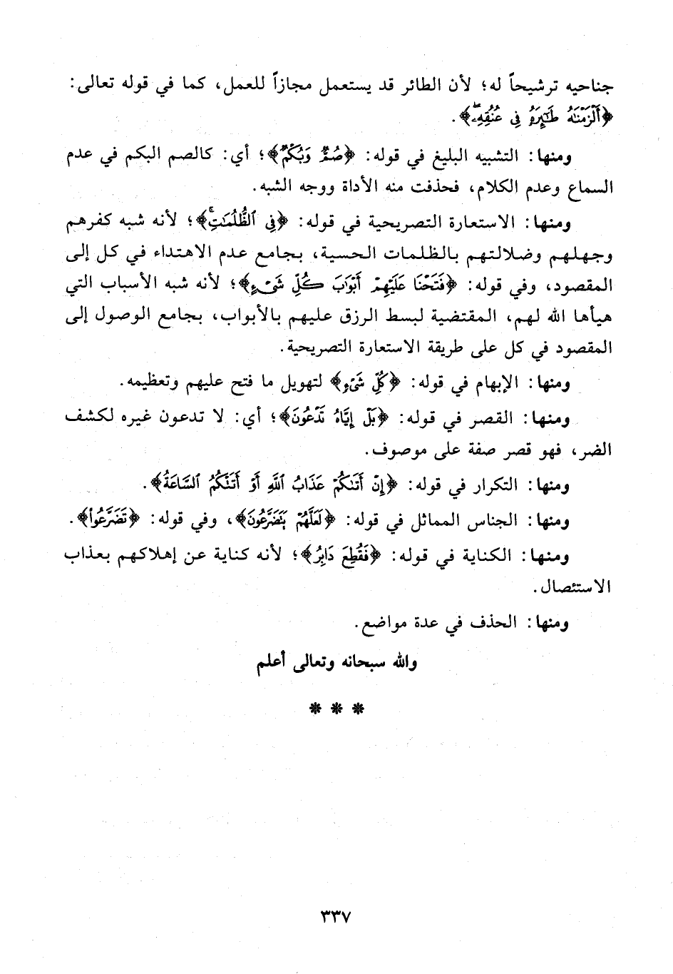 ومنها: القصر في قوله: {بَلْ إِيَّاهُ تَدْعُونَ}؛ أي: لا تدعون غيره لكشف الضر، فهو قصر صفة على موصوف.