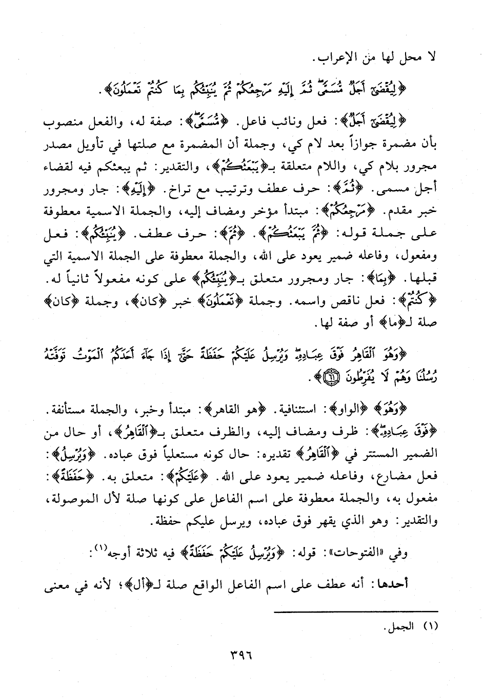وفي "الفتوحات": قوله: {وَيُرْسِلُ عَلَيْكُمْ حَفَظَةً} فيه ثلاثة أوجه (¬1):