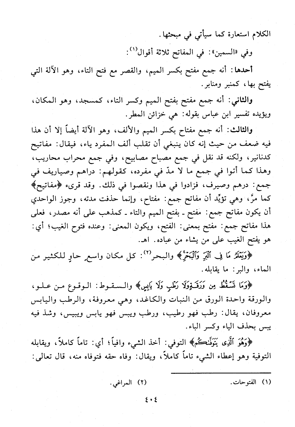 أحدها: أنه جمع مفتح بكسر الميم، والقصر مع فتح التاء، وهو الآلة التي يفتح بها، كمنبر ومنابر.