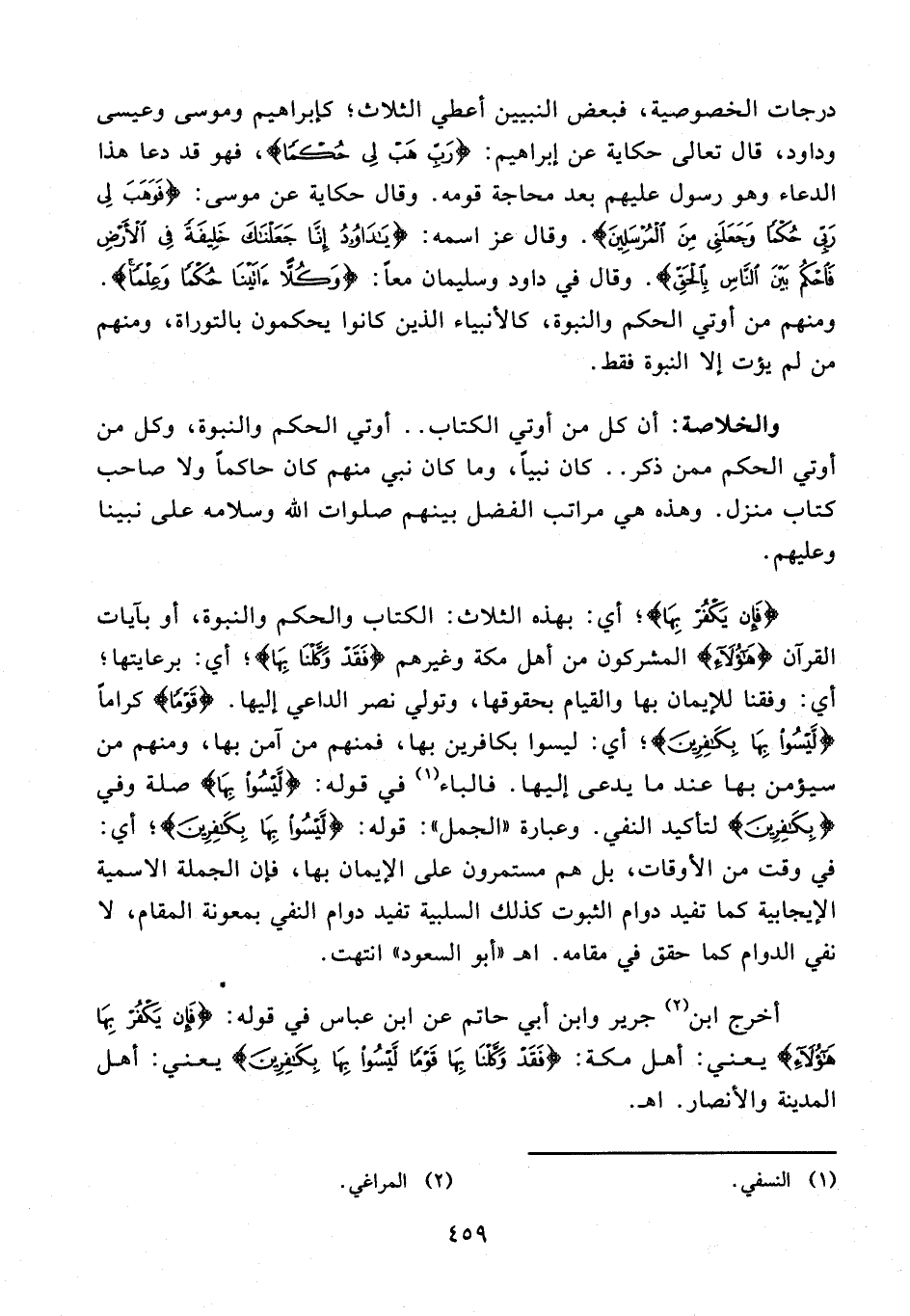 والخلاصة: أن كل من أوتي الكتاب .. أوتي الحكم والنبوة، وكل من أوتي الحكم ممن ذكر .. كان نبيًّا، وما كان نبي منهم كان حاكمًا ولا صاحب كتاب منزل. وهذه هي مراتب الفضل بينهم صلوات الله وسلامه على نبينا وعليهم.