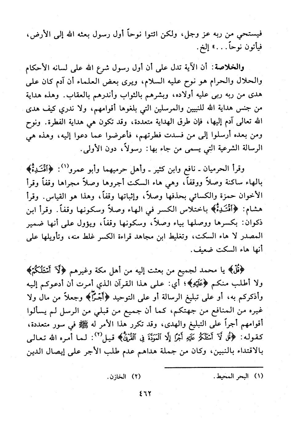 والخلاصة: أن الآية تدل على أن أول رسول شرع الله على لسانه الأحكام والحلال والحرام هو نوح عليه السلام، ويرى بعض العلماء أن آدم كان على هدى من ربه ربى عليه أولاده، وبشرهم بالثواب وأندرهم بالعقاب. وهذه هداية من جنس هداية الله للنبيين والمرسلين التي بلغوها أقوامهم، ولا ندري كيف هدى الله تعالى آدم إليها، فإن طرق الهداية متعددة، وقد تكون هي هداية الفطرة. ونوح ومن بعده أرسلوا إلى من فسدت فطرتهم، فأعرضوا عما دعوا إليه، وهذه هي الرسالة الشرعية التي يسمى من جاء بها: رسولًا، دون الأولى.