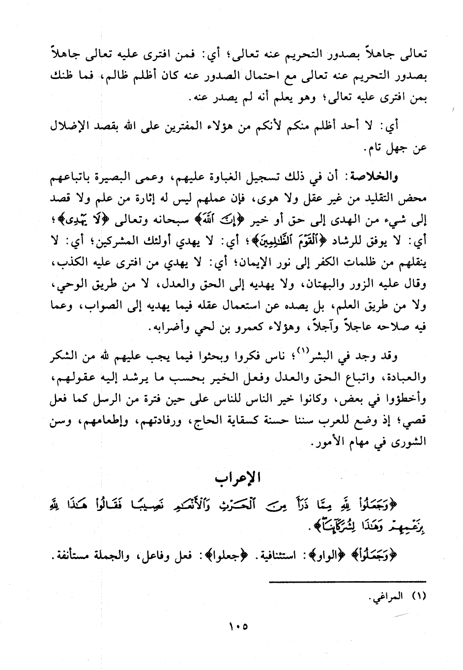 {وَجَعَلُوا لِلَّهِ مِمَّا ذَرَأَ مِنَ الْحَرْثِ وَالْأَنْعامِ نَصِيبًا فَقالُوا هذا لِلَّهِ بِزَعْمِهِمْ وَهذا لِشُرَكائِنا}.