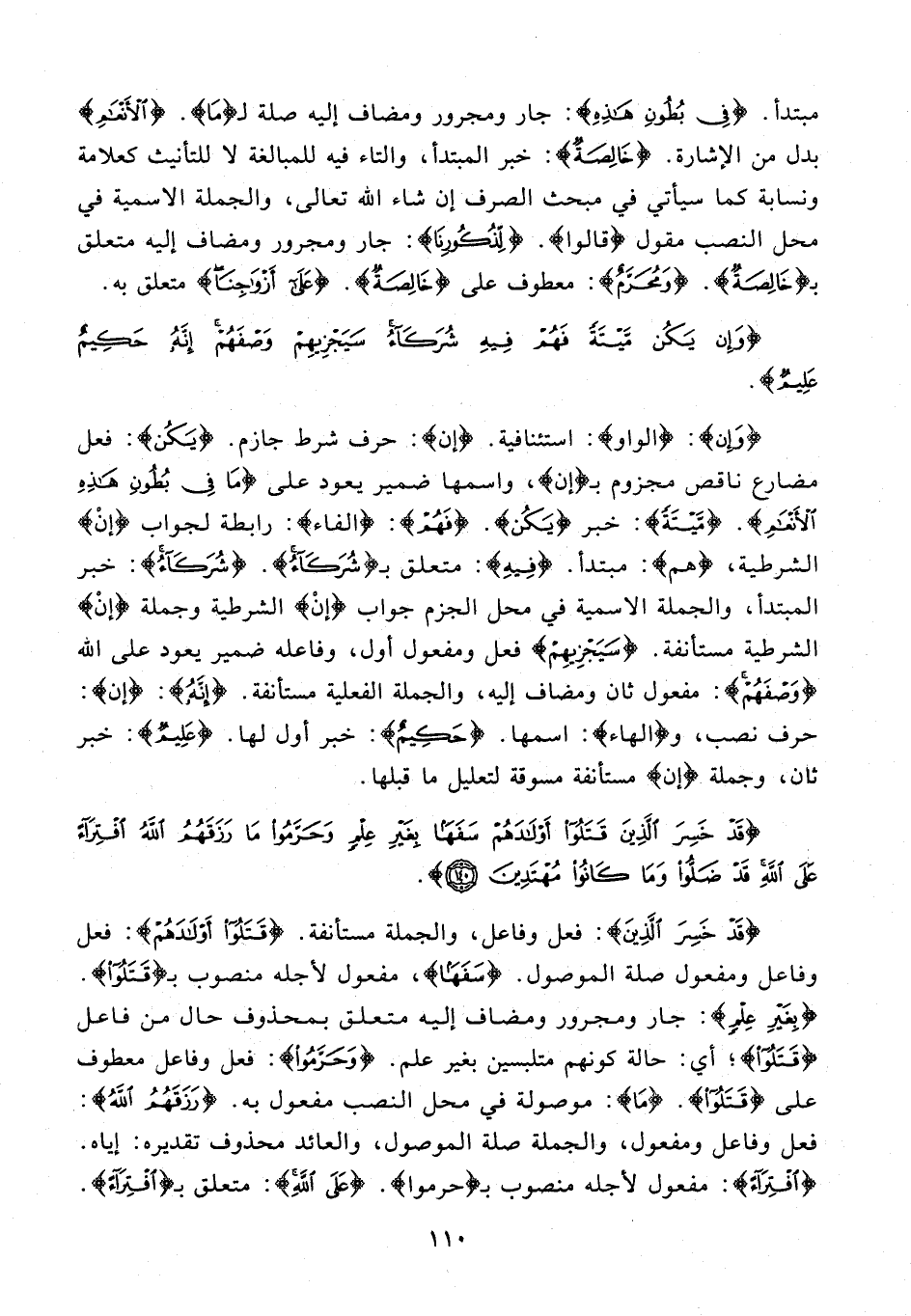 {قَدْ خَسِرَ الَّذِينَ}: فعل وفاعل، والجملة مستأنفة. {قَتَلُوا أَوْلادَهُمْ}: فعل وفاعل ومفعول صلة الموصول. {سَفَهًا}، مفعول لأجله منصوب بـ {قَتَلُوا}. {بِغَيْرِ عِلْمٍ}: جار ومجرور ومضاف إليه متعلق بمحذوف حال من فاعل {قَتَلُوا}؛ أي: حالة كونهم متلبسين بغير علم. {وَحَرَّمُوا}: فعل وفاعل معطوف على {قَتَلُوا}. {ما}: موصولة في محل النصب مفعول به. {رَزَقَهُمُ اللَّهُ}: فعل وفاعل ومفعول، والجملة صلة الموصول، والعائد محذوف تقديره: إياه. {افْتِراءً}: مفعول لأجله منصوب بـ حَرَّمُوا. {عَلَى اللَّهِ}: متعلق بـ {افْتِراءً}.
