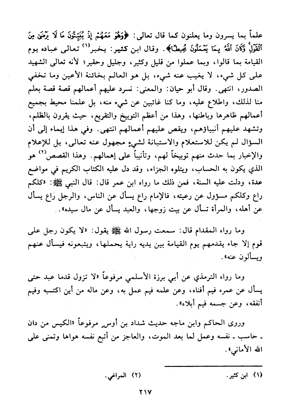 وروى الحاكم وابن ماجه حديث شداد بن أوس مرفوعا «الكيس من دان - حاسب - نفسه وعمل لما بعد الموت، والعاجز من أتبع نفسه هواها وتمنى على الله الأماني».