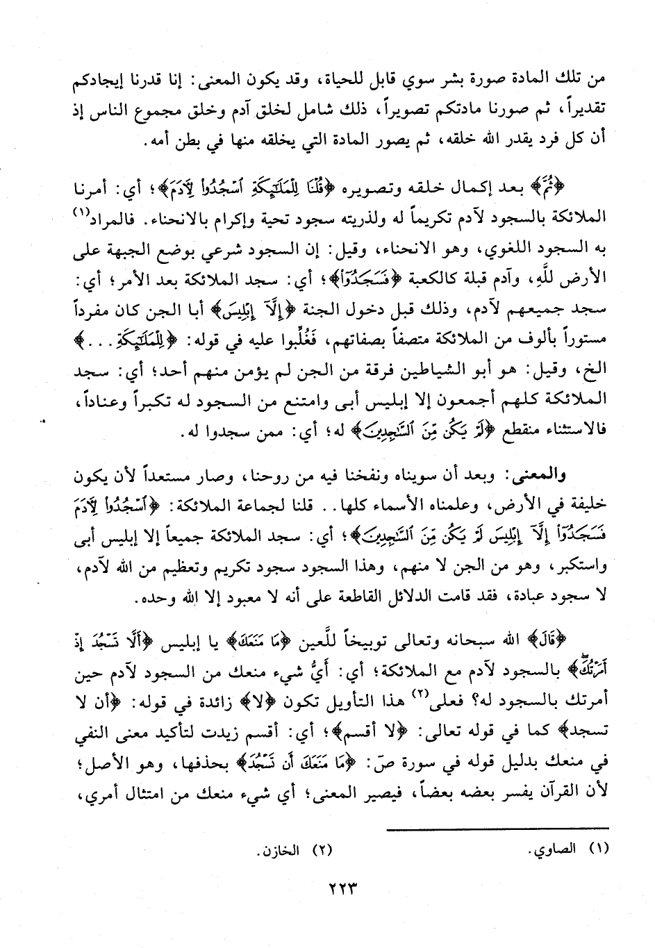 والمعنى: وبعد أن سويناه ونفخنا فيه من روحنا، وصار مستعدا لأن يكون خليفة في الأرض، وعلمناه الأسماء كلها .. قلنا لجماعة الملائكة: {اسْجُدُوا لِآدَمَ فَسَجَدُوا إِلَّا إِبْلِيسَ لَمْ يَكُنْ مِنَ السَّاجِدِينَ}؛ أي: سجد الملائكة جميعا إلا إبليس أبى واستكبر، وهو من الجن لا منهم، وهذا السجود سجود تكريم وتعظيم من الله لآدم، لا سجود عبادة، فقد قامت الدلائل القاطعة على أنه لا معبود إلا الله وحده.