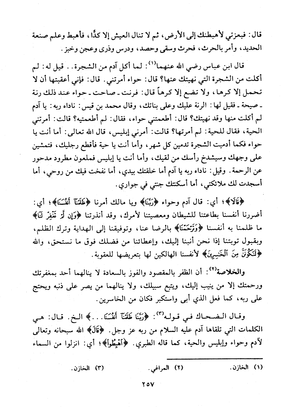 وقال الضحاك في قوله (¬3): {رَبَّنا ظَلَمْنا أَنْفُسَنا ...} الخ. قال: هي الكلمات التي تلقاها آدم عليه السلام من ربه عز وجل. قالَ الله سبحانه وتعالى لآدم وحواء وإبليس والحية، كما قاله الطبري.