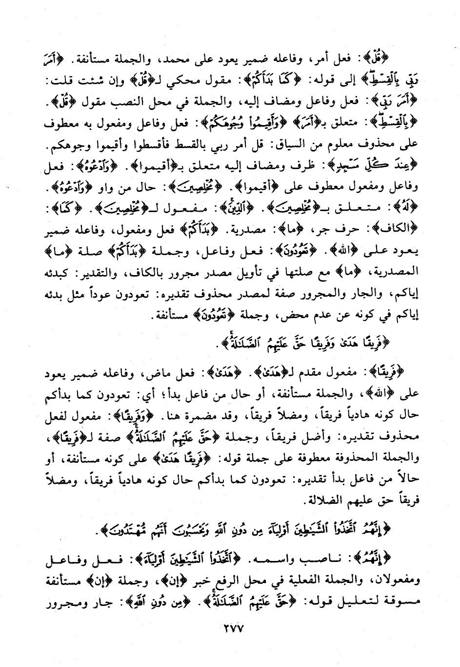 {فَرِيقًا}: مفعول مقدم لـ {هَدى}. {هَدى}: فعل ماض، وفاعله ضمير يعود على {الله}، والجملة مستأنفة، أو حال من فاعل بدأ؛ أي: تعودون كما بدأكم حال كونه هاديا فريقا، ومضلا فريقا، وقد مضمرة هنا. {وَفَرِيقًا}: مفعول لفعل محذوف تقديره: وأضل فريقا، وجملة {حَقَّ عَلَيْهِمُ الضَّلالَةُ} صفة لـ {فَرِيقًا}، والجملة المحذوفة معطوفة على جملة قوله: {فَرِيقًا هَدى} على كونه مستأنفة، أو حالا من فاعل بدأ تقديره: تعودون كما بدأكم حال كونه هاديا فريقا، ومضلا فريقا حق عليهم الضلالة.