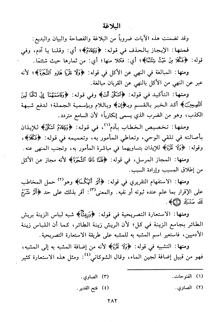 ومنها: التشبيه في قوله: {وَلا تَقْرَبا} لأنه من إضافة المشبه به إلى المشبه، فهو من قبيل إضافة لجين الماء، وقال الشوكاني (¬4): ومثل هذه الاستعارة كثير