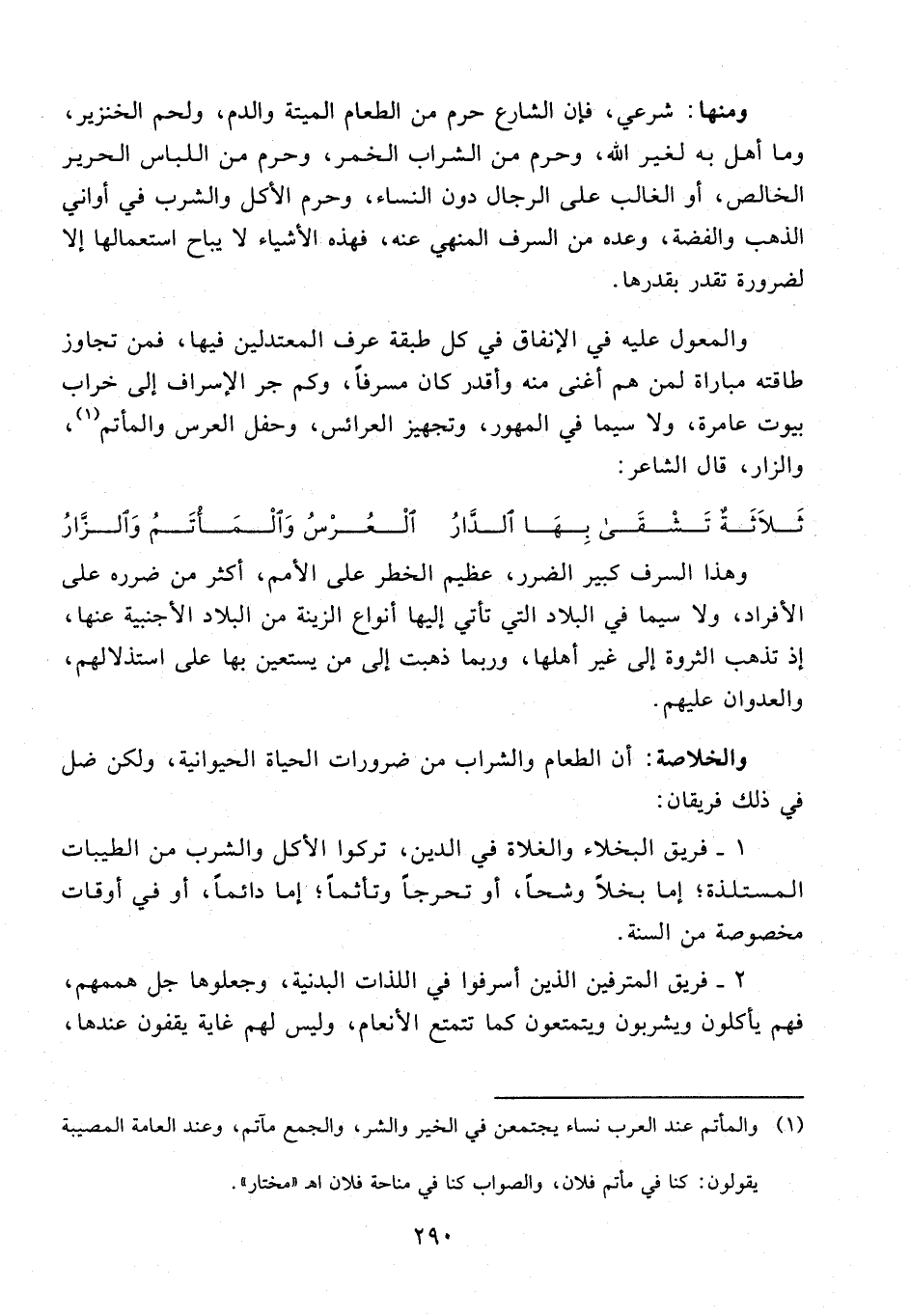 والمعول عليه في الإنفاق في كل طبقة عرف المعتدلين فيها، فمن تجاوز طاقته مباراة لمن هم أغنى منه وأقدر كان مسرفا، وكم جر الإسراف إلى خراب بيوت عامرة، ولا سيما في المهور، وتجهيز العرائس، وحفل العرس والمأتم (¬1)، والزار، قال الشاعر: