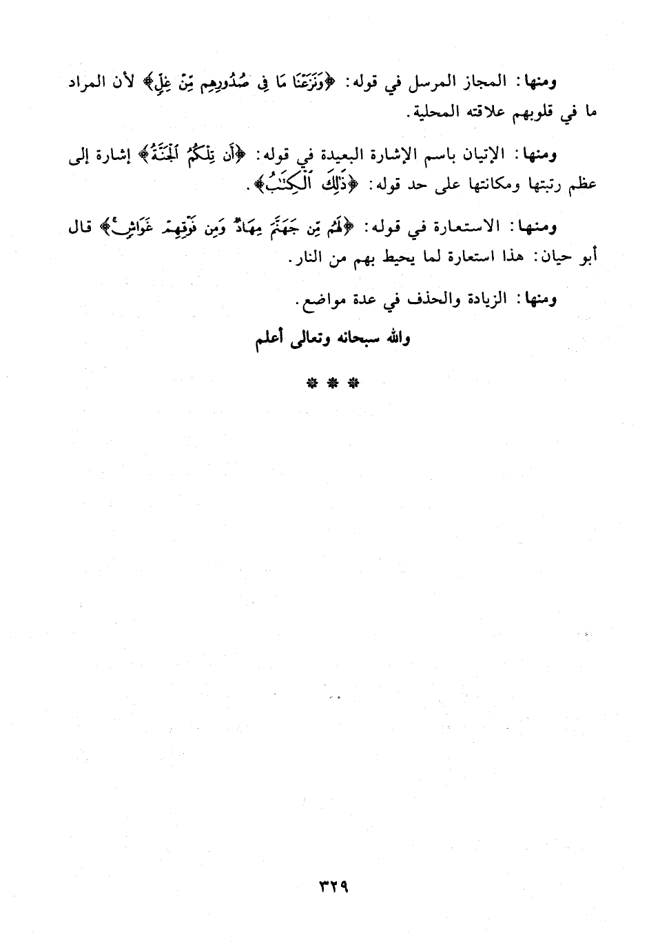 ومنها: المجاز المرسل في قوله: {وَنَزَعْنا ما فِي صُدُورِهِمْ مِنْ غِلٍّ} لأن المراد ما في قلوبهم علاقته المحلية.