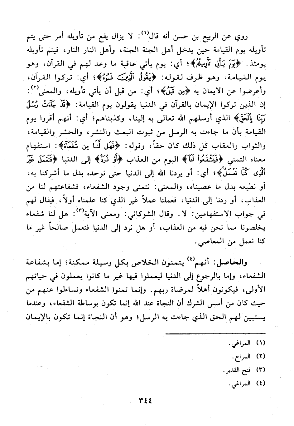 والحاصل: أنهم (¬4) يتمنون الخلاص بكل وسيلة ممكنة؛ إما بشفاعة الشفعاء، وإما بالرجوع إلى الدنيا ليعملوا فيها غير ما كانوا يعملون في حياتهم الأولى، فيكونون أهلا لمرضاة ربهم. وإنما تمنوا الشفعاء وتساءلوا عنهم من حيث كان من أسس الشرك أن النجاة عند الله إنما تكون بوساطة الشفعاء، وعندما يستبين لهم الحق الذي جاءت به الرسل؛ وهو أن النجاة إنما تكون بالإيمان
