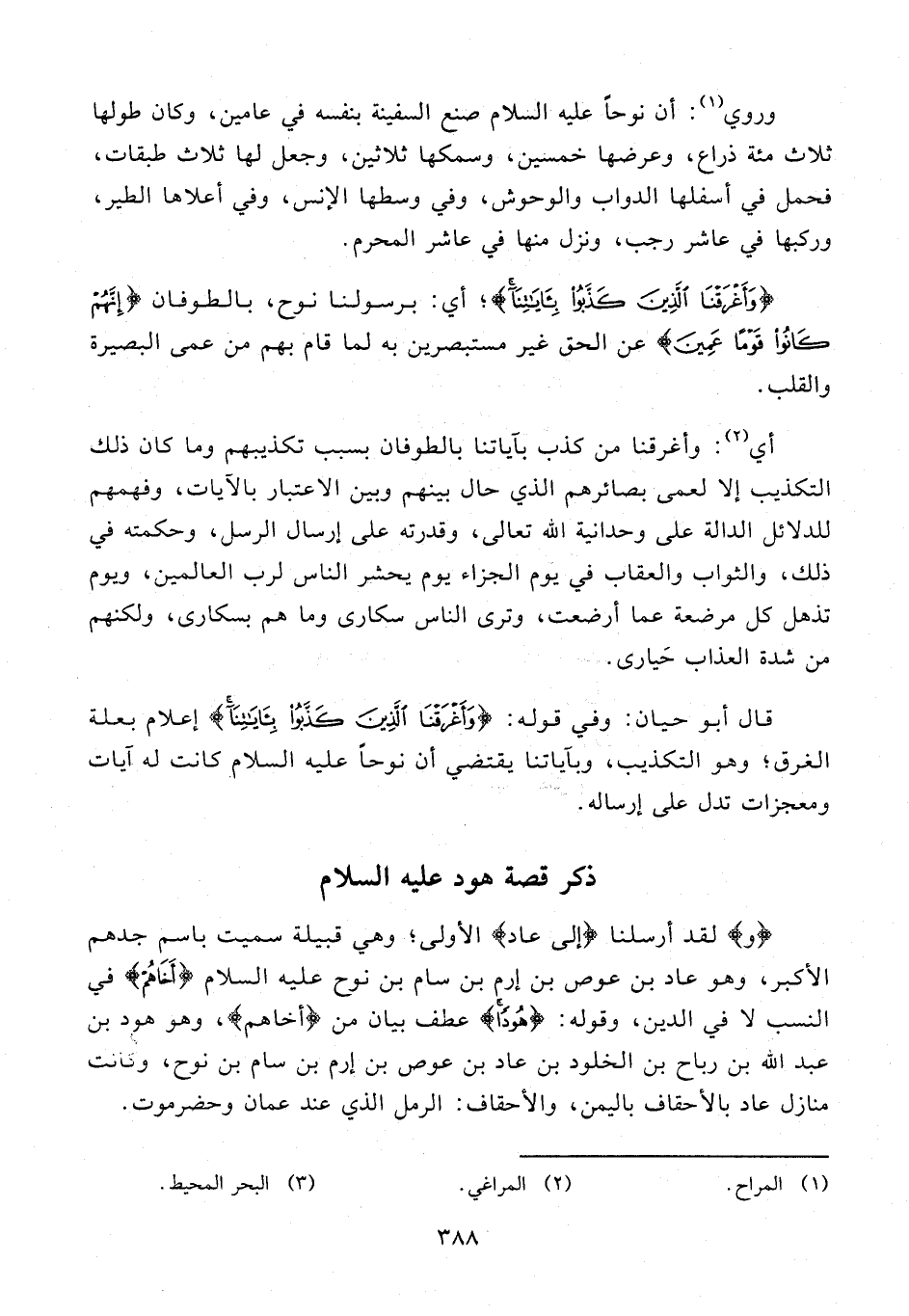 65 - {وَ} لقد أرسلنا {إِلى عادٍ} الأولى؛ وهي قبيلة سميت باسم جدهم الأكبر، وهو عاد بن عوص بن إرم بن سام بن نوح عليه السلام (¬3) {أَخاهُمْ} في النسب لا في الدين، وقوله: {هُودًا} عطف بيان من {أَخاهُمْ}، وهو هود بن عبد الله بن رباح بن الخلود بن عاد بن عوص بن إرم بن سام بن نوح، وكانت منازل عاد بالأحقاف باليمن، والأحقاف: الرمل الذي عند عمان وحضر موت.