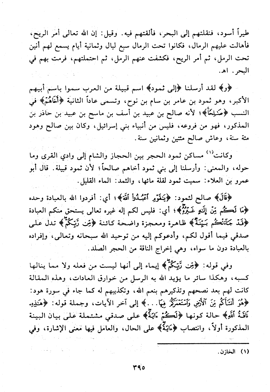 73 - {وَ} لقد أرسلنا {إِلى ثَمُودَ} اسم قبيلة من العرب سموا باسم أبيهم الأكبر، وهو ثمود بن عامر بن سام بن نوح، وتسمى عادا الثانية {أَخاهُمْ} في النسب {صالِحًا}؛ لأنه صالح بن عبيد بن أسف بن ماسح بن عبيد بن حاذر بن المذكور، فهو من فروعه، فليس من أنبياء بني إسرائيل، وكان بين صالح وهود مئة سنة، وعاش صالح مئتين وثمانين سنة.