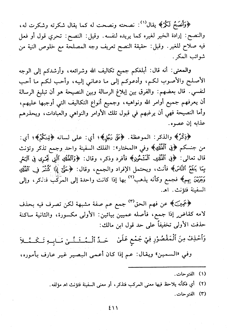 {ذِكْرٌ} والذكر: الموعظة. {عَلى رَجُلٍ}؛ أي: على لسانه {مِنْكُمْ}؛ أي: من جنسكم {فِي الْفُلْكِ} وفي «المختار»: الفلك السفينة واحد وجمع تذكر وتؤنث قال تعالى: {فِي الْفُلْكِ الْمَشْحُونِ} فأفرد وذكر، وقال: {وَالْفُلْكِ الَّتِي تَجْرِي فِي الْبَحْرِ بِما يَنْفَعُ النَّاسَ} فأنث، ويحتمل الإفراد والجمع، وقال: {حَتَّى إِذا كُنْتُمْ فِي الْفُلْكِ وَجَرَيْنَ بِهِمْ} فجمع وكأنه يذهب (¬2) بها إذا كانت واحدة إلى المركب فتذكر، وإلى السفينة فتؤنث. اه.