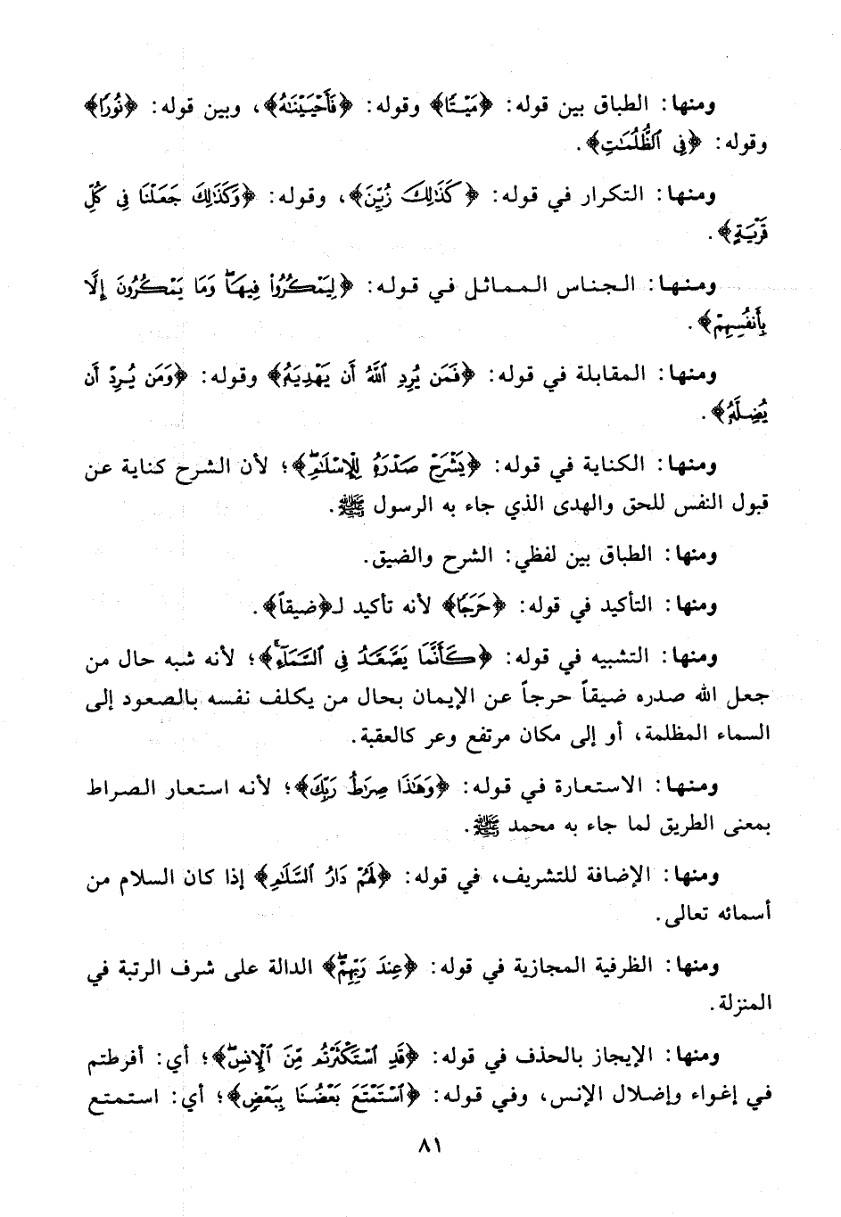 ومنها: الكناية في قوله: {يَشْرَحْ صَدْرَهُ لِلْإِسْلامِ}؛ لأن الشرح كناية عن قبول النفس للحق والهدى الذي جاء به الرسول صلى الله عليه وسلم.
