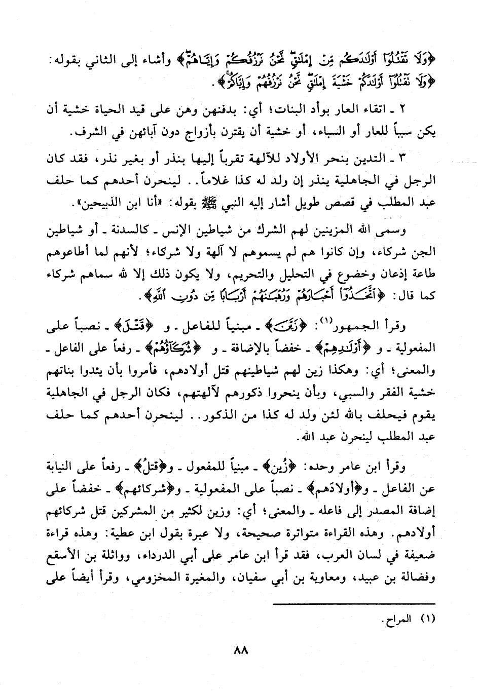 {وَلا تَقْتُلُوا أَوْلادَكُمْ مِنْ إِمْلاقٍ نَحْنُ نَرْزُقُكُمْ وَإِيَّاهُمْ} وأشاء إلى الثاني بقوله: {وَلا تَقْتُلُوا أَوْلادَكُمْ خَشْيَةَ إِمْلاقٍ نَحْنُ نَرْزُقُهُمْ وَإِيَّاكُمْ}.