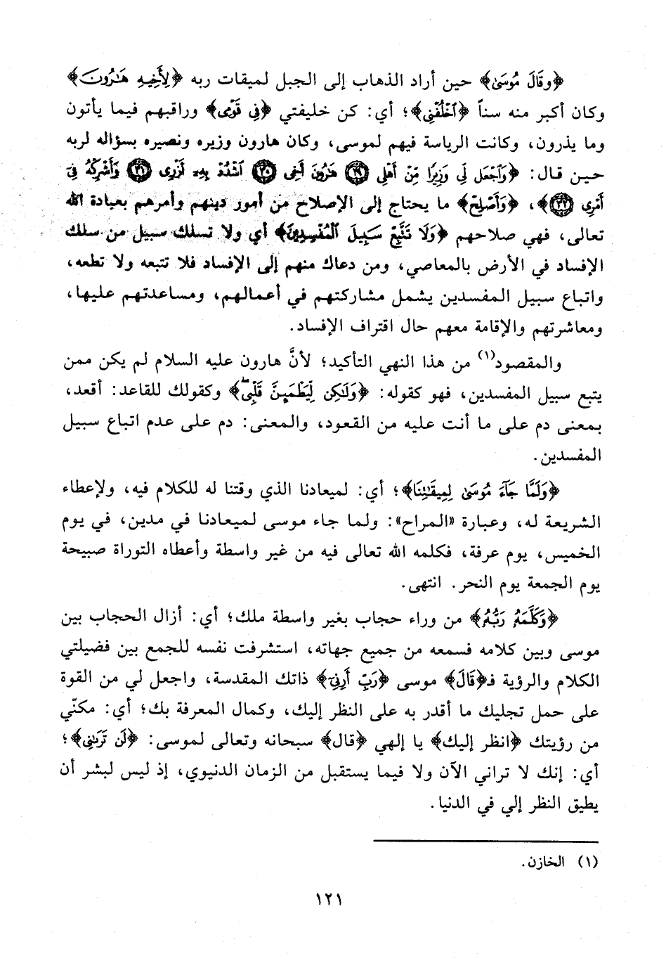 143 - {وَلَمَّا جاءَ مُوسى لِمِيقاتِنا}؛ أي: لميعادنا الذي وقتنا له للكلام فيه، ولإعطاء الشريعة له، وعبارة «المراح»: ولما جاء موسى لميعادنا في مدين، في يوم الخميس، يوم عرفة، فكلمه الله تعالى فيه من غير واسطة وأعطاه التوراة صبيحة يوم الجمعة يوم النحر. انتهى.