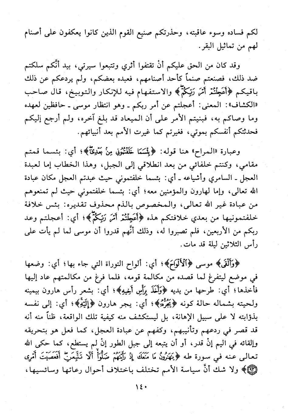 وقد كان من الحق عليكم أن تقتفوا أثري وتتبعوا سيرتي، بيد أنّكم سلكتم ضد ذلك، فصنعتم صنما كأحد أصنامهم، فعبده بعضكم، ولم يردعكم عن ذلك باقيكم {أَعَجِلْتُمْ أَمْرَ رَبِّكُمْ} والاستفهام فيه للإنكار والتوبيخ، قال صاحب «الكشاف»: المعنى: أعجلتم عن أمر ربكم - وهو انتظار موسى - حافظين لعهده وما وصاكم به، فبنيتم الأمر على أن الميعاد قد بلغ آخره، ولم أرجع إليكم فحدثتكم أنفسكم بموتي، فغيرتم كما غيرت الأمم بعد أنبيائهم.