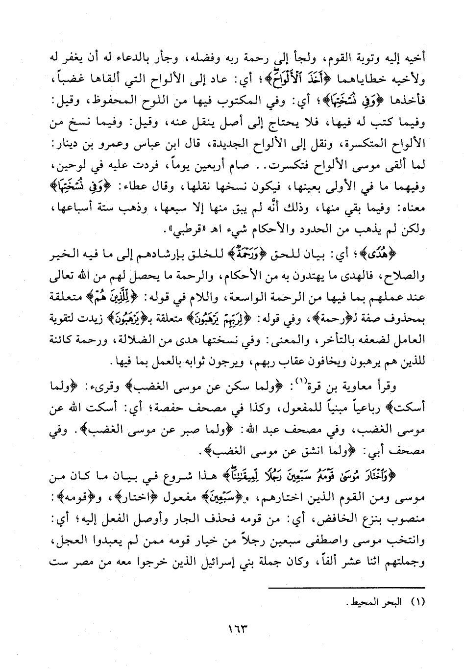 155 - {وَاخْتارَ مُوسى قَوْمَهُ سَبْعِينَ رَجُلًا لِمِيقاتِنا} هذا شروع في بيان ما كان من موسى ومن القوم الذين اختارهم، و {سَبْعِينَ} مفعول {اخْتارَ}، و {قَوْمَهُ}: منصوب بنزع الخافض، أي: من قومه فحذف الجار وأوصل الفعل إليه؛ أي: وانتخب موسى واصطفى سبعين رجلا من خيار قومه ممن لم يعبدوا العجل، وجملتهم اثنا عشر ألفا، وكان جملة بني إسرائيل الذين خرجوا معه من مصر ست