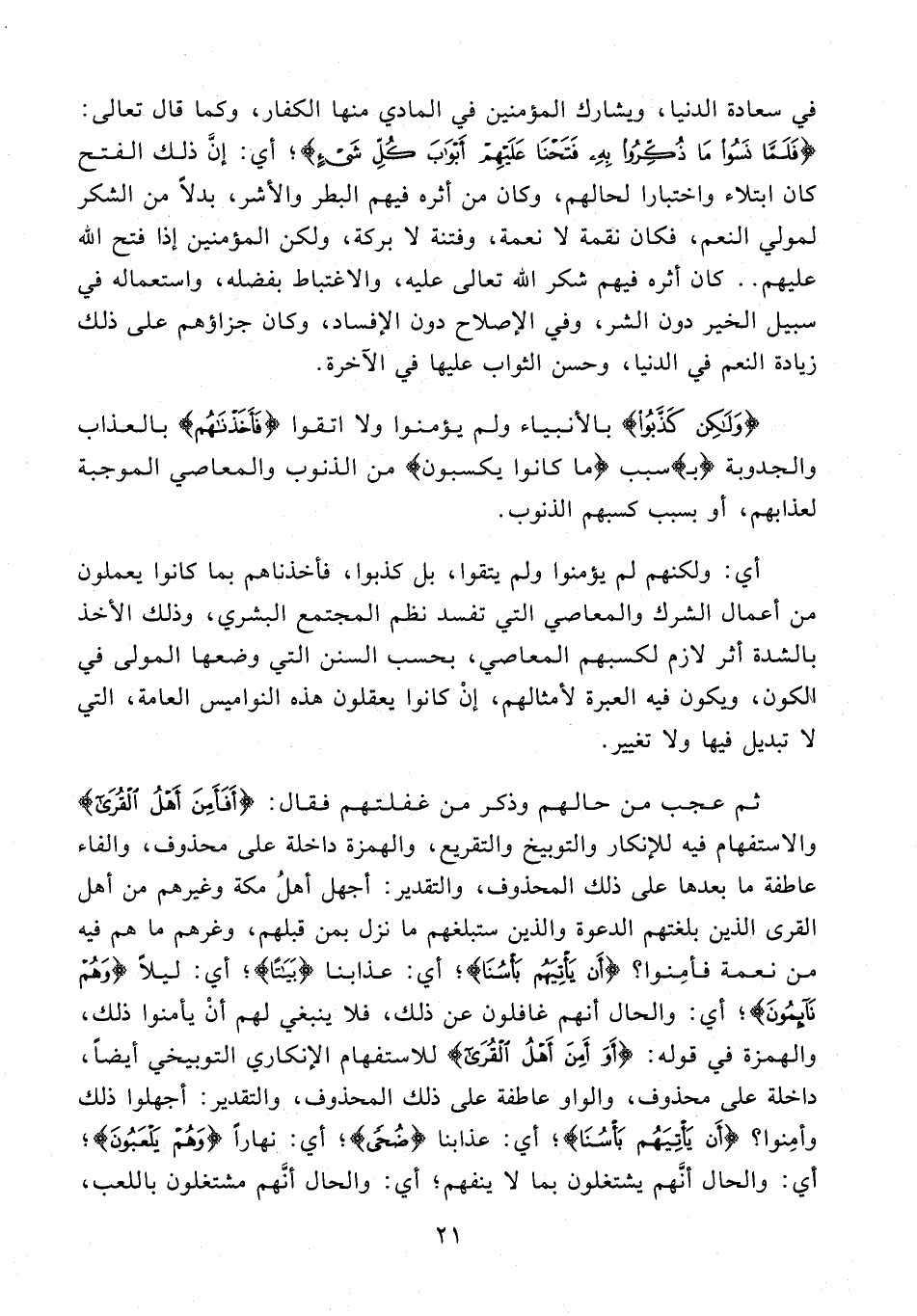 98 - والهمزة في قوله: {أَوَأَمِنَ أَهْلُ الْقُرى} للاستفهام الإنكاري التوبيخي أيضا، داخلة على محذوف، والواو عاطفة على ذلك المحذوف، والتقدير: أجهلوا ذلك وأمنوا؟ {أَنْ يَأْتِيَهُمْ بَأْسُنا}؛ أي: عذابنا {ضُحًى}؛ أي: نهارا {وَهُمْ يَلْعَبُونَ}؛ أي: والحال أنّهم يشتغلون بما لا ينفهم؛ أي: والحال أنّهم مشتغلون باللعب،