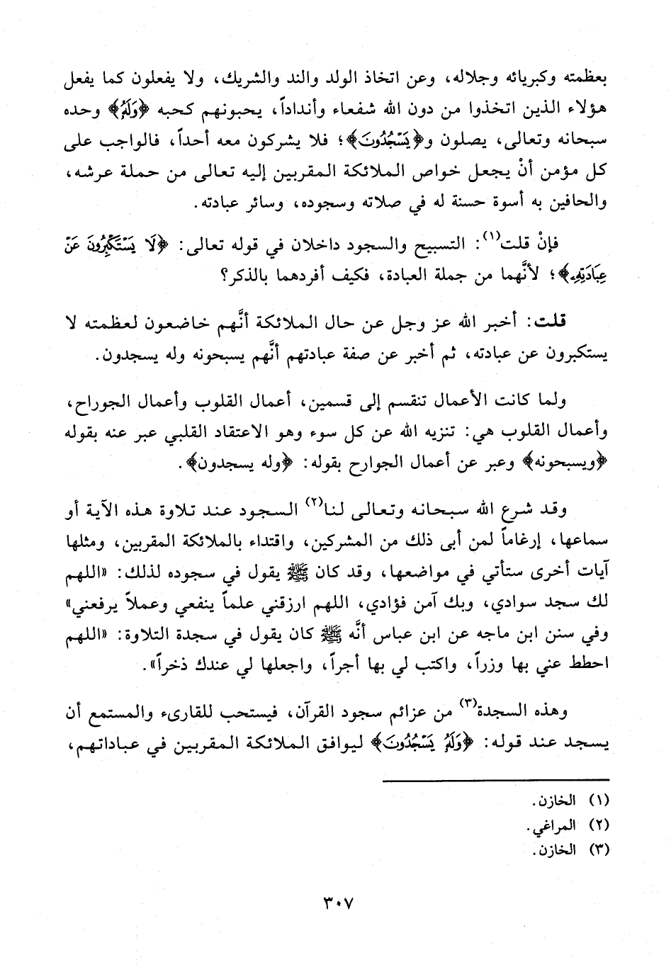 وهذه السجدة (¬3) من عزائم سجود القرآن، فيستحب للقارىء والمستمع أن يسجد عند قوله: {وَلَهُ يَسْجُدُونَ} ليوافق الملائكة المقربين في عباداتهم،