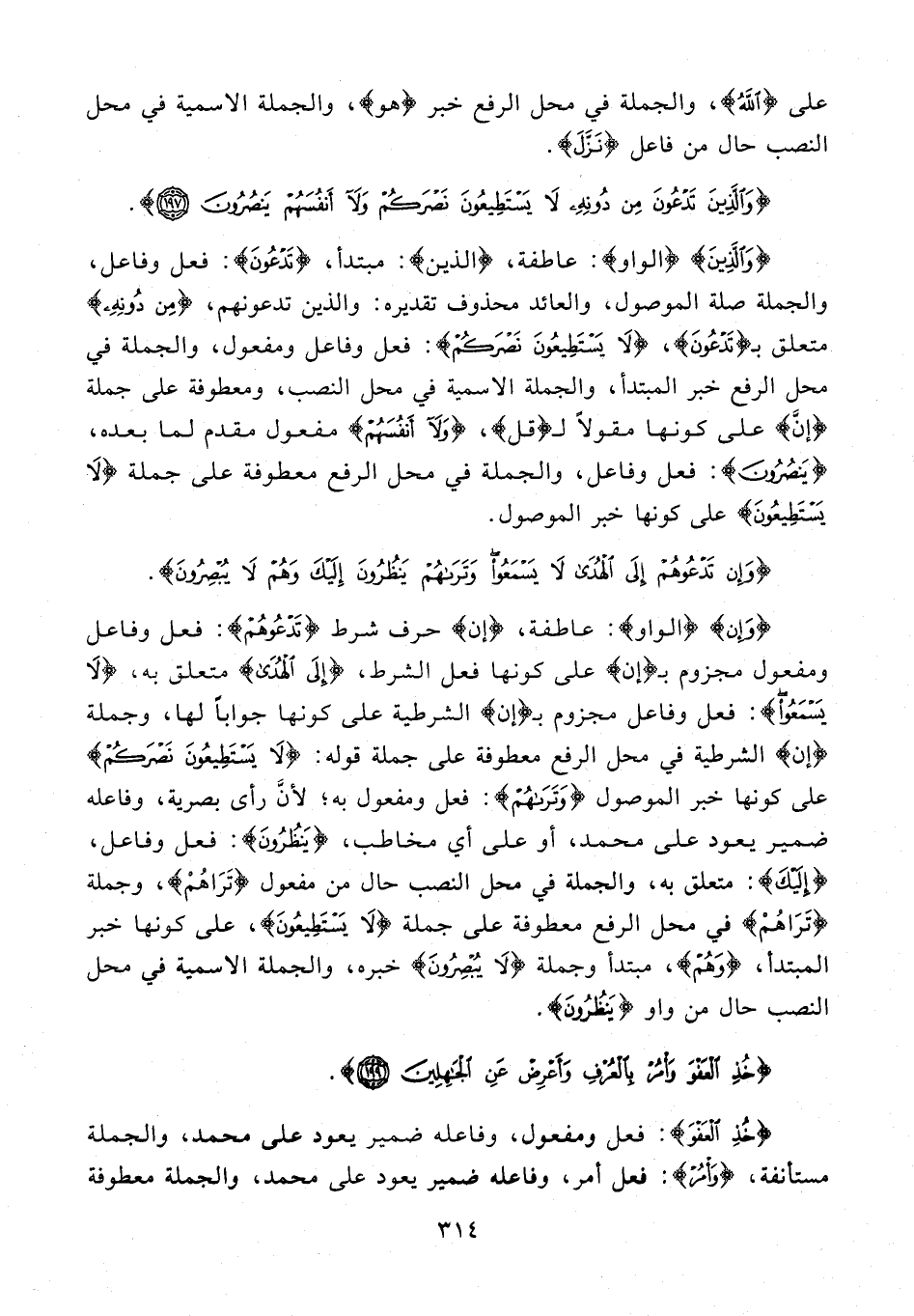 {خُذِ الْعَفْوَ}: فعل ومفعول، وفاعله ضمير يعود على محمد، والجملة مستأنفة، {وَأْمُرْ}: فعل أمر، وفاعله ضمير يعود على محمد، والجملة معطوفة